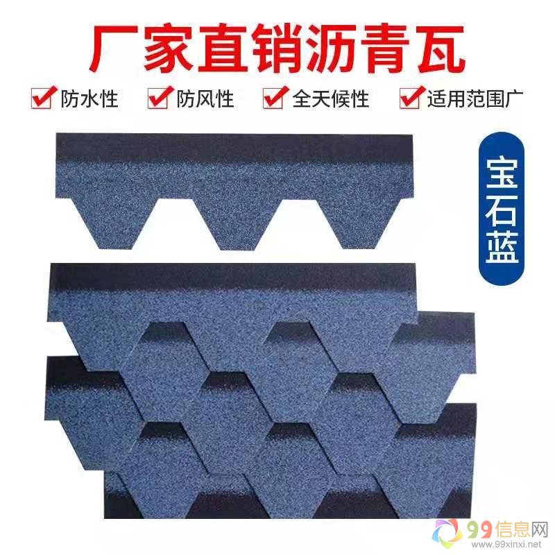 适用范围广:玻纤瓦是一种柔性瓦片,可自由裁剪,能成功覆盖于不同形状和不同基层的屋顶。适用屋面坡度从15°到90°来自www.99xinxi.net。广泛应用于别墅、排屋、多层、高层、木屋、平改坡等。